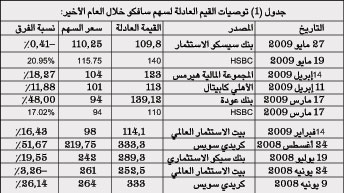 إلا أن المستويات الحالية لأسعار اليوريا والأمونيا تعد عند مستويات متدنية للغاية وخصوصاً عند مقارنة بمستوياتها في عام 2007، كما أن التوصيات الأكثر تشاؤماً تتوقع صافي أرباح ربعية لسافكو للربع الثاني من هذا العام قريبة من مستوياتها في نهاية الربع الأول 2009.. لذلك فإن هذه التوصيات لم تضع قيمة للسهم تقل عن 110 ريالات بأي حالٍ من الأحوال كأقل تقدير (أحدث تقييم للقيمة العادلة كان في 27 مايو الماضي).. ومن ثم فإن السعر السوقي الحالي للسهم (112.75 ريالاً) يعد أقرب للقيمة العادلة للسهم.. وأي انحدارٍ عنه يزيد السهم جاذبية كقناة استثمارية ولكن على المدى المتوسط إلى الطويل.. إلا أن كل ذلك لا يجب أن يتم بمعزل عن معطيات سوق الأسهم، حيث ينبغي الحذر، فأي اضطراباتٍ لمؤشر السوق يمكن أن تفتح الطريق إلى قاع منتصف مارس الماضي للسهم.. ولكن عندها سيصبح السهم أكثر جاذبية ومستعداً لفتح مسار صاعد ولو أحادي خلال الربع الأخير من هذا العام والتي تزداد معه توقعات تحرك الطلب العالمي على المواد الغذائية وبالتالي تحرك الطلب على الأسمدة.