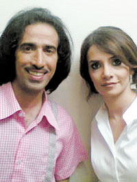 الممثل فايز المالكي في لقطة مع الممثلة التركية سونغول أولدن الشهيرة بـ (نور) قبل تصوير أحد مشاهد مسلسل (بيني وبينك) ظهر أمس في تركيا. |