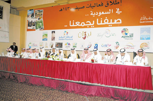 وقال الجهني إن صيف هذا العام سيشهد مهرجانات وفعاليات وأنشطة متعددة في مختلف مناطق المملكة تم العمل على أن تكون فعاليات متنوعة وتلامس كل شرائح المجتمع وتسهم في أن تشهد المملكة هذا العام صيفاً جاذباً، معرباً عن شكره وتقديره لكل الجهات الحكومية وشركات القطاع الخاص التي أسهمت في تنظيم ودعم هذه الفعاليات. وأشار الجهني إلى أن الهيئة تحرص على أن تكون داعماً ومكملاً لجهود المناطق في إحداث تنمية وحركة سياحية فيها؛ لأن القناعة التي ينطلق بها العمل وتقوم عليها استراتيجية التنمية السياحية المقرة من الدولة تؤكد أن السياحة تنبع من المناطق وتنطلق منها، موضحاً أن الدور الذي قامت به الهيئة ولا تزال يركز على بذل الجهد لتهيئة التنظيمات وتوحيد الجهود مع الجهات ذات العلاقة، إلى جانب ما تقدمه من حملات توعوية وتسويقية تستهدف الترويج للسياحة المحلية طوال العام وخلال المواسم بشكل أكثر تركيزاً، سواء من خلال رعايتها ودعمها للفعاليات والمهرجانات الصيفية أو من خلال حملتها الإعلانية والإعلامية الرامية إلى دعم السياحة الداخلية والترويج لها والتعريف بأنشطتها وإبراز مميزاتها أو من خلال مراكزها وبرامجها المعلوماتية المتمثلة في مراكز المعلومات التي تقدم الخدمات المعلوماتية من قبل موظفين مدربين لتقديم الخدمات المعلوماتية أو بالمعلومات المتوفرة في الشاشات وقواعد المعلومات الإلكترونية المتاحة للجمهور.