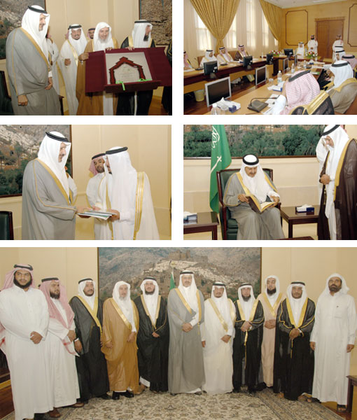 وفي ختام الاستقبال تسلم سموه درعا تذكاريا بهذه المناسبة من محافظ محافظة المندق ثم التقطت الصور التذكارية بهذه المناسبة.