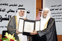 مضيفاً أن التقاعد ليس التقاعد عن الحياة ولا التوقف عن العطاء وهذا التكريم هو اعتراف هذه الوزارة بجهودكم وتقديرها لمساهمتكم. بعد ذلك قام الوزير العثيمين بتسليم الدروع التذكارية وشهادات الشكر للمتقاعدين والمتقاعدات، ثم تناول الجميع طعام العشاء.