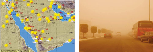 أكدت الرئاسة العامة للأرصاد وحماية البيئة أنه تبيّن للمختصين لديها، من دراسة الخرائط الآنية ومعلومات النماذج العددية، أنّ مناطق شمال وشرق ووسط المملكة سوف تتأثر اعتباراً من اليوم الاثنين الموافق 6-7- 1430هـ وحتى يوم الخميس الموافق 9-7- 1430هـ، برياح شمالية نشطة السرعة مثيرة
