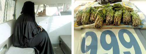 جاء ذلك عندما كانت إحدى فرق دوريات الأمن بمنطقة الرياض تقوم بعملية تمشيط داخل حي منفوحة اشتبهت بسيدة تحمل كيساً وتحاول الهروب بعد مشاهدتها للفرقة على شارع قتيبة بن مسلم بحي منفوحة وبعد إيقافها ومساءلتها عما بداخل الكيس ارتبكت وقامت الفرقة بتفتيش الكيس ووجد بداخله حزم قات مخدرة تزن 2 كيلو و334 جراماً سلمت المرأة وما ضبط بحوزتها من حزم القات المخدرة إلى إدارة مكافحة المخدرات لاستكمال التحقيق معها.
