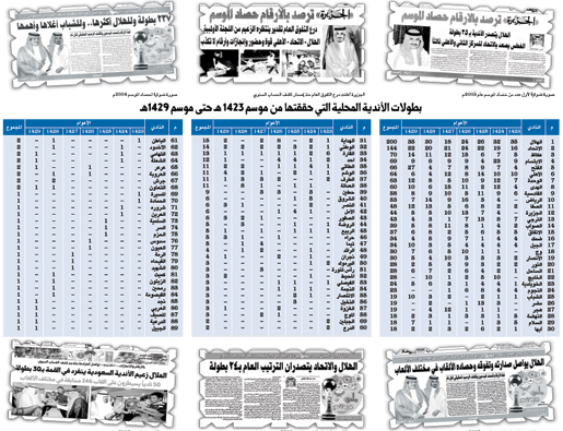 كشف الحساب السنوي الذي تقدمه الجزيرة سنوياً عن وجود 89 ناديا في ساحة المنافسة من أصل 153 ناديا وتمكن 23 ناديا من المنافسة على بطولات المملكة في السنوات الماضية؛ ما جعلها حاضرة في كشف الحساب السنوي على الدوام وهي أندية (الهلال والاتحاد وعكاظ والابتسام والفتح والأهلي والوحدة والهدى والقادسية والصفا والترجي والصواب والاتفاق وضمك والجيل والأنصار والنور والساحل الخويلدية والنهضة وأبها والوطني والقارة). فيما تفاوت حضور 66 ناديا في هذا الكشف من موسم لآخر وغاب عن الحضور وبشكل نهائي 64 ناديا.