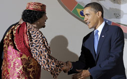 صافح الرئيس الأمريكي باراك أوباما نظيره الزعيم الليبي معمر القذافي الخميس على مأدبة عشاء لزعماء قمة مجموعة الثماني في إيطاليا. وفيما يلي بعض الأحداث المهمة التي شهدها مسار العلاقات الليبية - الأمريكية: