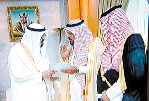 استقبل خادم الحرمين الشريفين الملك عبدالله بن عبدالعزيز آل سعود - حفظه الله - في جدة بعد ظهر أمس الشيخ ممدوح بن طلال بن رمال وحمود بن نايل بن طوعان السويدي الشمري والد القتيل عواد بن حمود بن نايل وأسرته والشيخ مهدي بن حسني التبيناوي بمناسبة عفوهم عن عبدالله بن فالح بن نايف العمود الشمري الذي قتل ابنهم.