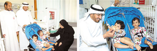 غادر التوأم السيامي المغربي سعيدة وعزيزة أمس غرفة العلاج المركز وتم تنويمهما في جناح 7 للأطفال بمدينة الملك عبدالعزيز الطبية للحرس الوطني بالرياض، حيث أصبح كل منهما في وضع صحي مستقر تماماً منذ عدة أيام، وتم رفع كافة أجهزة المراقبة والقساطر الوريدية والأدوية عنهما. وتتناولان الرضاعة بشكل طبيعي، وعادت كافة الوظائف الحيوية إلى طبيعتها، بما في ذلك استقرار حالتهما النفسية، حيث إن كل منهما تتحرك وتتفاعل مع والديهما والطاقم الطبي بشكل طبيعي.