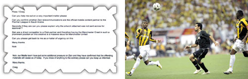 نجح نادي مانشستر يونايتد الإنجليزي في الموسم الماضي في المحافظة على حقوق شريكة الاستراتيجي مجموعة STC عندما منع شركة زين للاتصالات من استخدام حقوق STC عبر جوال الدوري الإنجليزي الممتاز لكرة القدم والذي تمتلك زين حقوقه عن طريق قناة الجزيرة؛ فقد قام مانشستر بمخاطبة هيئة دوري المحترفين الإنجليزي مباشرةً بعد نزول حملات إعلانية متعددة استخدمت فيها زين حقوق STC مع مانشستر لتضطر هيئة دوري المحترفين الإنجليزي إلى منع زين من استخدام حقوق مانشستر المباعة من قبل لSTC وتم سحب جميع الإعلانات الموجودة في الصحف والفضائيات والشوارع، وحتى المواقع الإلكترونية، وذلك قبل أن يتم عرض التصميم المقترح على نادي مانشستر الذي بدوره عرضه على STC وتمت الموافقة عليه. ويبدو أن شركة الاتصالات السعودية التي تمتلك حقوقاً حصرية مع أندية الاتحاد والأهلي والنصر تنتظر الرد من اللجنة التنفيذية التي أمر بتشكيلها نائب الرئيس العام لرعاية الشباب الأمير نواف بن فيصل لاتخاذ قرار تجاه ما يحدث بين الاتصالات السعودية وموبايلي وزين التي اشترت مؤخراً من هيئة دوري المحترفين حقوق الدوري، ولعل القائمين على STC ينتظرون بالتأكيد من شركائهم الاستراتيجيين محلياً أن يسجلوا موافقة مع الهيئة للمحافظة على الحقوق المباعة لهم مثلما حدث من ردة فعل من نادي مانشستر يونايتد عندما استخدمت زين حقوقاً سبق للنادي الإنجليزي أن باعها على شريكة الاستراتيجي (STC).