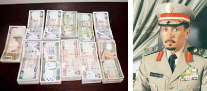 فرق التحري -وعلى ضوء هذه المعلومات- أعدت كميناً محكماً استطاعت من خلاله القبض على المذكور داخل محل العطارة الذي يعمل به ومعه مبلغ ثلاثين ألفاً ومائة وثمانية وعشرين ريالاً كان ينوي تحويلها، كما وجد عنده في المحل شخص من بني جلدته في العقد الرابع من العمر، وبتفتيش المحل عثر على سبعة أجهزة جوال ودفتر تحويلات وختم باسم إحدى المؤسسات التجارية وإيصالات تحويل على بنك الراجحي وعدد من الوثائق، كما عثر في دولاب المذكور على مبلغ خمسة وستين ألف وستمائة ريال وأجهزة اتصال وتوصيل بشبكة الإنترنت.