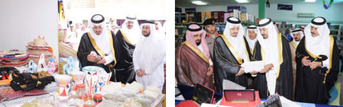 ومن جانب آخر افتتح سموه معرض الأسر المنتجة ضمن فعاليات المهرجان، والذي يضم أكثر من 18 جناحا لعرض منتجات وأعمال الأسر المنتجة بالمنطقة.