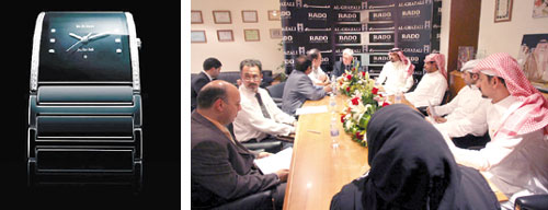 عقدت شركة الغزالي وشركة رادو السويسرية مؤتمراً صحفياً في مقر الشركة بالرياض مؤخراً، حضر المؤتمر رئيس شركة رادو السويسرية السيد رولاند شتراويلي والرئيس التنفيذي لشركة الغزالي الأستاذ راشد العبد اللطيف وعدد كبير من الصحفيين والإعلاميين والقنوات الفضائية. |