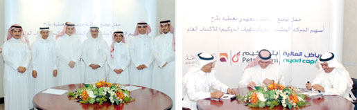 وقعت شركة الرياض المالية والشركة الوطنية للبتروكيماويات (بتروكيم) اتفاقية تتعهد بمقتضاها الأولى بتغطية الاكتتاب العام لأسهم الثانية، وذلك بمقر شركة الرياض المالية أمس الأول الثلاثاء. |
