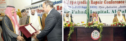 رعى صاحب السمو الملكي الأمير محمد بن سعود بن عبدالعزيز أمير منطقة الباحة حفل فعاليات المؤتمر العالمي لجراحة المسالك البولية للأطفال بالمملكة الذي تستضيفه المديرية العامة للشؤون الصحية بمنطقة الباحة وذلك بقاعة الشؤون الأكاديمية بمستشفى الملك فهد بالباحة الليلة.. وبُدئ الحفل الخطابي المعد بهذه المناسبة بآيات من القرآن الكريم.. ثم ألقى مدير عام الشؤون الصحية بمنطقة الباحة الدكتور عبد الحميد بن سفر الغامدي كلمة رحب فيها بسمو أمير منطقة الباحة.. معرباً عن سعادته وسروره برعاية سموه لحفل انطلاق أعمال المؤتمر.