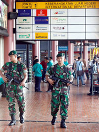 كما أن القنابل المستخدمة مماثلة لعبوات ناسفة عثرت عليها الشرطة قبل ايام في منزل كان استخدم مخبأ من قبل توب في سيلاكاب (جنوب جزيرة جاوا) بحسب مباي. ونور الدين توب الماليزي الجنسية هو احد ابرز مدبري الاعتداءات الدامية للجماعة المسلحة في بداية العقد الحالي وبينها بالخصوص اعتداء بالي (202) قتيلا في 2002 واعتداء فندق ماريوت جاكرتا (12) قتيلاً في 2003. وهذا المحاسب السابق أصبح منذ ذلك التاريخ ابرز المطلوبين في اندونيسيا بيد انه تعذر توقيفه إلى حد الآن وذلك رغم استنفار أجهزة الأمن. وأضاف المسؤول الاندونيسي أن اعتداءي الجمعة (تظهر) انه لا يزال ينشط وان توقيفه يجب أن يكون أولية. ومن باب الاحتياط دعت السلطات الاندونيسية أمس الفنادق الكبرى والمراكز التجارية إلى رفع مستوى إجراءاتها الأمنية التي كانت خففتها في السنوات الأخيرة. كما تم تحريك 500 عسكري لدعم قوات الشرطة عند الحاجة.
