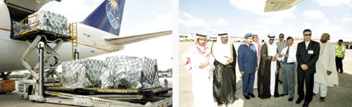 وكان في استقبال الطائرة لدى وصولها أرض المطار سفير خادم الحرمين الشريفين لدى بنجلاديش والنيبال الدكتور عبدالله بن ناصر البصيري والملحق العسكري السعودي في بنجلاديش العميد عبدالعزيز بن عبدالله الدايل ومدير عام الاغاثة بوزارة الغذاء وإدارة الكوارث في جمهورية بنجلاديش محمد فضل الحق ومندوبا وزارة المالية سلطان السبيعي وعبدالله المحيسن وعدد من المسؤولين.