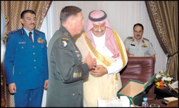 استقبل صاحب السمو الملكي الأمير خالد بن سلطان بن عبدالعزيز مساعد وزير الدفاع والطيران والمفتش العام للشئون العسكرية بمكتب سموه بالمعذر أمس قائد القيادة المركزية الأمريكية الوسطى الفريق أول دفيد بتروس والوفد المرافق له. وجرى خلال اللقاء تبادل الأحاديث الودية ومناقشة عدد من