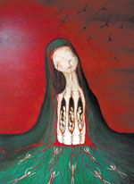 التشكيلية مها هنيدي تخصص تربية فنية تمتلك موهبة مدعمة بالدراسة اكتشفت ميولها منذ الطفولة وتوجتها بالمؤهل العلمي مارست إبداعها وقت الدراسة وبعد ذلك انشغلت في حياتها الأسرية، إلا أنها متمسكة بقول الشاعر (نقل فؤادك حيث شئت من الهوى.. ما الحب إلا للحبيب الأول)، فبدأت في الاستعداد للمشاركات وممارسة إبداعها التشكيلي بمختزل كبير من المواضيع المستلهمة من الحياة بكل تنوعها الثابت والمتحرك وفي مقدمتها القضايا الإنسانية التي تقول إنها أبرز ما يشغلها في أعمالها، باعتبار أن الفن رسالة ولهذا هي حريصة على ملامسة هذا الجانب.. تعود الفنانة مها إلى الساحة بهدوء قد يتبعها تحرك نشط في المشاركات مع الفنانين والفنانات وكان أولى خطواتها تسجيل عضويتها بالجمعية السعودية للفنون التشكيلية وحرصها على أن تكون ضمن أي نشاط قادم. في هذه الإطلالة الأولى لمها هنيدي اخترنا لها هذه النماذج من أعمالها مع أن في مرسمها ما يفوق هذا العدد.