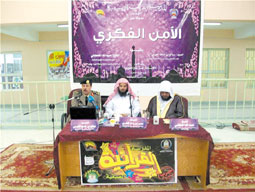 تحدث فضيلة الشيخ عبيدالله القحطاني مدير فرع وزارة الشؤون الإسلامية والاوقاف والدعوة والارشاد بمنطقة تبوك المكلف والعميد صالح بن حامد الحربي مساعد مدير شرطة منطقة تبوك لشؤون العمليات والناطق الاعلامي بها عن الأمن الفكري خلال ندوةٍ اقامتها المدرسة القرانية الصيفية في ثانوية الملك سعود بتبوك، حيث تحدثا عن مفهوم الأمن الفكري بحضور مدير مركز الاشراف التربوي بالادارة العامة للتربية والتعليم بمنطقة تبوك الاستاذ ماجد بن عبدالرحمن القعير ومشرف التوعية الاسلامية بتعليم تبوك الاستاذ حسن رفاع المطيري وعدد كبير من طلاب المدرسة.