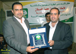أقام نادي الطلبة السعوديين بالإسكندرية الأسبوع الماضي حفلاً تكريمياً وداعياً للأستاذ رياض بن محسن الصيخان مشرف الشؤون الدراسية ونائب مدير مكتب الاتصال بالإسكندرية، وذلك بمناسبة انتهاء فترة عمله وانتقاله للعمل بالملحقية الثقافية بأستراليا.