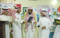 رعى مدير إدارة الشؤون المدرسية بتعليم البنين بمحافظة المجمعة عبدالعزيز العوله والشيخ عبدالرحمن الوهبي المرشد بإدارة الإرشاد والتوجيه بالأمن العام المعرض الختامي لأنشطة ومنتجات طالبات الملتقى الصيفي للموهوبات بالمحافظة للعام الدراسي 1429 - 1430هـ، وقد كان في استقبالهم مدير الشؤون الإدارية والمالية مناحي البديعة ومدير وحدة المتابعة فهد الكريزي ومدير العلاقات العامة ومنسق الملتقى يحيى المنيخ، كما حضر المعرض عدد من رؤساء الأقسام بالإدارة. هذا، وقد اطلع الجميع على المعرض ومحتوياته التي تبرز إنتاج الطالبات من خلال ما قدم لهن من برامج إثرائية تم تطبيقها على الواقع كبرنامج (القوى الطبيعية.. الغاز) ووحدته الإثرائية (غاز الأكسجين وغاز الأوزون). بعد ذلك توجه الجميع إلى التجول داخل قسم الموهوبات والاطلاع على مرافق القسم، ثم توجهوا إلى ركن العرض، حيث شاهد الحضور برنامجاً وثائقياً عن قسم الموهوبات، بعده تم تكريم الداعمين والمساهمين في إنجاح الملتقى هذا العام، حيث سلمت شهادات شكر وتقدير لهم قام بتسليمها عبدالعزيز العوله والشيخ عبدالرحمن الوهبي. والمكرمون هم: ناصر بن عبدالله ابانمي وعثمان بن تركي العبدان وفهد المحرج واحمد السعيد وخالد بن عثمان المحارب، ثم تم تسجيل الكلمات في سجل الزيارات التي تضمنت إعجابهم وإشادتهم بما شاهدوه من إنجاز وإبداع.