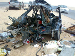 استمر مسلسل الحوادث في طريق حفر الباطن - الرقعي نتيجة لتأخر المقاول المنفذ لازدواجيته لأكثر من أربع سنوات، حيث لقي خمسة من أسرة واحدة مصرعهم وأصيب خمسة آخرون بإصابات مختلفة من جراء حادث مروري مروّع بين عائلتين سورية وكويتية صباح أمس، حيث اصطدمت السيارتان (كريسيدا) و(يوكن) وجهاً لوجه من جراء تجاوز خاطئ لإحداهما وفق التخطيط الأولي لمرور حفر الباطن.