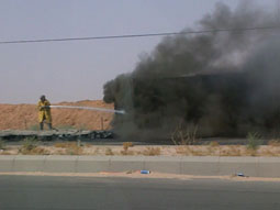 احترقت شاحنة إثر انقلابها على مدخل الشارع العام في بلدة وثيلان. وكانت الشاحنة المحملة بكمية كبيرة من البطاريات والزيوت قد ارتطمت بأعمدة الكهرباء مما نتج عنه اشتعال المركبة وانقطاع التيار الكهربائي لمدة ساعتين عن البلدة وأصيب سائقها بإصابات بليغة ادخل على اثرها مستشفى وثيلان العام. وقد تم على الفور ابلاغ مركز الدفاع المدني بساجر ولكن بسبب بعد المسافة التي تبلغ اكثر من خمسين كيلومترا بين بلدة وثيلان ومدينة ساجر لم يحضر الدفاع المدني الا بعد ساعة وخمس دقائق من وقوع الحادث.. وقد زاد الأمر تعقيداً وقوع حادث اخر في مدينة ساجر وهو ماجعل المسؤولين بالدفاع المدني بساجر يكتفون بإرسال سيارة (وايت) وفردين من افراد الدفاع المدني. وبعد ساعتين ونصف وصلت سيارة اخرى للإطفاء تابعة لمحافظة المذنب تم الإستعانة بها لإكمال مهمة إخمادالحريق.