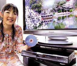 موظفة بشركة باناسونيك اليابانية للإلكترونيات تعرض مسجلاً جديداً مزوّداً بقرص صلب بسعة تخزين 2 تيرابايت يمكنه استيعاب 1440 ساعة تسجيل (أكبر سعة تخزين حتى الآن على مستوى العالم)، وذلك بمعرض الشركة بالعاصمة اليابانية طوكيو.