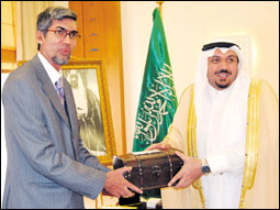 استقبل صاحب السمو الملكي الأمير الدكتور فيصل بن مشعل بن سعود بن عبدالعزيز نائب أمير القصيم في مكتب سموه بمقر ديوان الإمارة في مدينة بريدة أمس سفير جمهورية بنجلاديش الشعبية لدى المملكة محمد فضل الكريم الذي يزور المنطقة حالياً، وقد رحب به سموه وجرى خلال اللقاء بحث عدد من الموضوعات ذات الاهتمام المشترك بين البلدين الصديقين، وتمنى سموه للسفير دوام التوفيق والنجاح. وفي نهاية اللقاء تبودلت الهدايا التذكارية بهذه المناسبة.