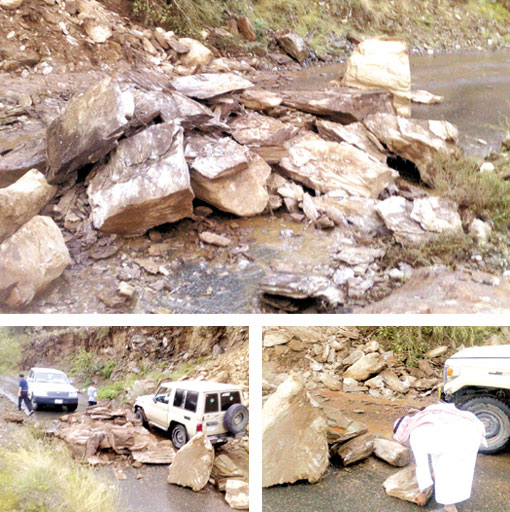 كما شهدت بعض الطرق الجبلية انهيارات صخرية منها طريق عثوان الذي شهد انهيارا صخريا أدى إلى انقطاع الطريق لفترة بسيطة حتى تم فتحه جزئيا عن طريق المواطنين الذين تعاونوا في إزالة أجزاء من الصخور.