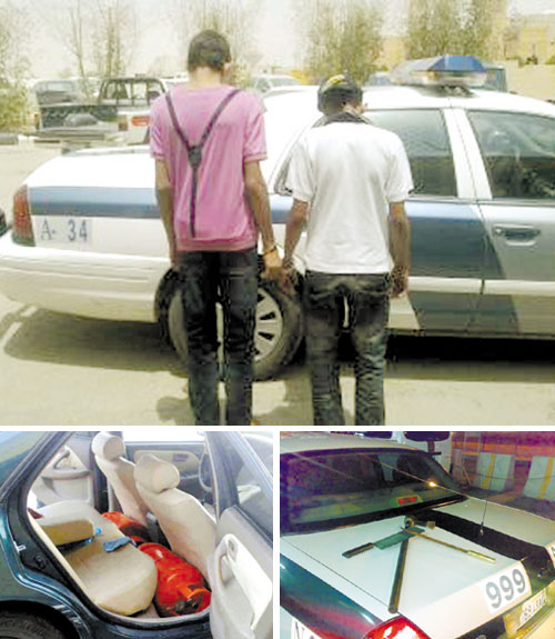 تمكنت فرق دوريات الأمن بمنطقة الرياض من القبض على مجموعة متورطين في قضايا جنائية وحيازة مخدرات وأسلحة وذخيرة وعمالة متخلفة... وذلك خلال قيامها بعمليات تفتيش مفاجئة حيث تم القبض على شخص مخمور يستقل سيارة نوع كابرس وبعد تفتيش سيارته ضبط بداخلها قارورة عرق مسكر وست إقامات عمال وبعد التأكد من هوية الشخص اتضح أنه مطلوب لإدارة مكافحة المخدرات كما تم القبض على شخص في العقد الثاني من العمر يستقل سيارة فورد وبعد تفتيش الشخص وسيارته عثر بداخلها على قارورة بها مادة مسكرة، وفي سياق مشابه تمكنت فرق دوريات الأمن من القبض على ثلاثة أشخاص بحالة غير طبيعية أفاد أحد المبلغين بأنهم قاموا بسرقة عدد 3 دريل وبكرة توصيل، كما توصلت فرق دوريات الأمن من خلال تمشيط فرقها داخل حي الخليج من القبض على ثلاثة أشخاص مبلغ عنهم بعد قيامهم بسرقة كاميرا تصوير من أحد الأسواق وفروا هاربين على سيارة داتسون غمارتين وبعد تفتيش سيارة الأشخاص وجدت الكاميرا داخل السيارة وتم القبض عليهم مع المضبوطات كما تمكنت دوريات الأمن من القبض على قائد سيارة لومينا بالقرب من إحدى السيارات المتوقفة، وبعد تفتيش سيارة الشخص وجد بداخلها ثلاثة إطارات اتضح أنه يقوم بسرقتها من السيارات المتوقفة على الشوارع العامة.