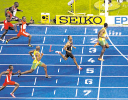 أحرز العداء الجامايكي اوساين بولت أمس الاحد ذهبية سباق 100 م ضمن النسخة الثانية عشرة من بطولة العالم التي تحتضنها العاصمة الالمانية مسجلا رقما قياسيا عالميا جديدا قدره 58.9 ثوان. وكان الرقم القياسي العالمي السابق بحوزة بولت نفسه وهو 69.9 ثوان وسجله في اولمبياد بكين العام
