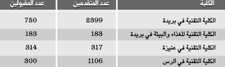 تقدم للكليات التقنية في منطقة القصيم أكثر من أربعة آلاف متقدم للتدريب عبر البوابات الإلكترونية للكليات سيتم قبول نحو 1552 متدرباً في كليات التقنية بمنطقة القصيم حسب الجدول أدناه.