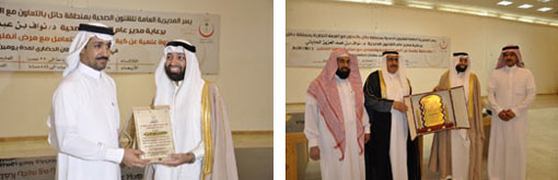وانطلقت فعاليات حفل التدشين بالقرآن الكريم ثم ألقى راعي الندوة مدير عام الشؤون الصحية بمنطقة حائل الدكتور نواف بن عبدالعزيز الحارثي كلمة رحب فيها بحضور الندوة والتي عقدت بناءً على توجيهات صاحب السمو الملكي الأمير سعود بن عبدالمحسن أمير منطقة حائل وسمو نائبه وبدعم حثيث ومباشر واهتمام من معالي وزير الصحة الدكتور عبدالله الربيعة، وأشاد الدكتور الحارثي بالدور الهام التي قامت به الغرفة التجارية الصناعية بحائل في إعداد وإنجاح هذه الندوة وذلك من خلال إرسال أكثر من ستين ألف رسالة نصية توعوية عبر الهواتف المتنقلة بالإضافة إلى طباعة عشرين ألف مطوية توعوية عن هذا المرض وتوزيعها على المواطنين في الميادين، كما أكد على أهمية مراجعة المستشفيات بالمنطقة في حال الإصابة به لتفادي انتشاره والحد منه، وبعد ذلك تقدم رئيس مجلس إدارة الغرفة التجارية الصناعية بمنطقة حائل الأستاذ خالد بن علي السيف بإلقاء كلمة الغرفة التجارية بحائل الجهة الراعية للندوة شكر فيها إدارة الطب الوقائي بإدارة الرعاية الصحية الأولية التابعة للشؤون الصحية بمنطقة حائل على قيادتها دفة الندوة، مؤكداً أن غرفة حائل يسرها أن تتعاون مع صحة حائل بإقامة مثل هذه الندوات التي تهتم بأمن وصحة المواطن بهذا الوطن الآمن، سائلاً الله عز وجل أن تؤتي هذه الندوة ثمارها التوعوية، وفي ختام كلمته خص السيف بالشكر مدير عام صحة حائل ومساعديه لما أظهروه من وعي واهتمام وتفان بتوعية عموم أهالي المنطقة والمقيمين فيها بسبل الوقاية من المرض، متمنياً للجميع دوام الصحة والعافية ثم قدم بعد ذلك مدير عام صحة حائل درعاً تذكارياً لرئيس غرفة حائل الأستاذ السيف كما قدم عدداً من الدروع وشهادات التقدير للمساهمين في إنجاح هذه الندوة.