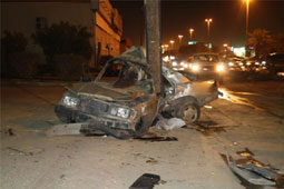 أصيب مقيم مصري الجنسية (35) عاماً بإصابات خطيرة نتيجة لاصطدام سيارته بعامود للضغط العالي أمس الأول بطريق الملك عبدالعزيز بمحافظة حفر الباطن. وقال شاهد عيان إن سائق سيارة (مرسيدس) مسرعًا على طريق الملك خالد العام فقد السيطرة على سيارته بعد أن انفجر أحد الإطارين الأماميين مما أدى إلى انحرافها لطريق الخدمة واصطدامها بعامود للضغط العالي على جانب الطريق والتفاف السيارة على العامود، وتم نقل المصاب إلى قسم الإسعاف والطوارئ بمستشفى الملك خالد العام وأدخل لغرفة العناية المركزة.