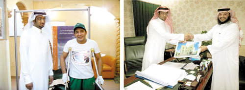 استقبلت الجمعية الخيرية للخدمات الهندسية الرحالة عبد الله بن حسين المحيميد في مقرها باعتبارها آخر نقطة وصول مركزية له بالرياض. كما تم استقبال الجهة المنظمة، حيث استقبلهم مدير عام الجمعية المهندس سالم الحربي، بحضور مسؤول العلاقات العامة والإعلام بالجمعية المهندس إبراهيم التركي، في إطار ذلك تحدث مدير الجمعية م. سالم الحربي بمجريات رحلته وشكره على جهده ورسالته الوطنية. وأكد بأن هذا العمل ليس بمستغرب على أبناء هذا الوطن. ثم تحدث عن جوانب وعمل الجمعية مؤكدا أنها تقدم الخدمات الهندسية للمشروعات الخيرية منها الإشراف والتنسيق لإعداد الدراسات العمرانية والمعمارية والهندسية كما تطرق أيضا لأعمال التنفيذ والتجهيز والدراسات والبحوث التي تسهم في تطوير الآليات والوسائل المعّينة على تنفيذ المشروعات الخيرية بما يتلاءم مع متطلباتها الهندسية والاجتماعية والاقتصادية وأيضا البيئية. كما تحدث بإيجاز عن أهداف الجمعية نحو المجتمع وأنها تدعم المشاريع الخيرية بخبرات هندسية، وأكد أن هدف الجمعية هو الوصول بالمشاريع الخيرية إلى أعلى مستوى من التميز فنياً وقيمياً. وتم تسليم دروع تكريمية للرحالة والجهة المنظمة، كما تشرفت الجمعية باللقاء مع وكيل وزارة الشوؤن الاجتماعية في حفل التكريم.