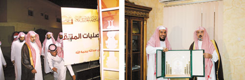 قام مدير جامعة الإمام محمد بن سعود الإسلامية، الأستاذ الدكتور سليمان بن عبد الله أبا الخيل، بزيارة لمقر المكتب التعاوني للدعوة والإرشاد وتوعية الجاليات بالثمامة، وذلك يوم الثلاثاء الماضي، حيث كان في استقباله مدير المكتب الشيخ عمر بن عبد الرحمن العمر وبعض أعضاء مجلس الإدارة والموظفين والدعاة العاملين في المكتب. وقد اطلع معاليه خلال الزيارة على الأنشطة والبرامج التي ينفذها المكتب، واستمع لشرح مفصّل عن مشروع المصليات المتنقلة وهو عبارة عن مصلى متكامل يتنقل بسيارة مجهزة صممت خصيصاً لأجل إقامة الصلاة في البراري مثل منطقة الثمامة التي يرتادها الشباب بشكل خاص، وكذلك الأماكن التي لا توجد فيها مساجد على الطرق السريعة، حيث يتمكن الناس من سماع الأذان، ويجدون في الوقت نفسه حاجتهم من الماء والمكان المهيأ للصلاة، حيث تم تجهيزه بخزان مياه للوضوء، وفرش يتسع لأكثر من 600 مصل، بالإضافة إلى مكبرات للصوت، ومولد للكهرباء، وإضاءة.