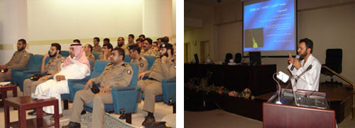 في إطار التعاون المشترك مع إدارة الخدمات الطبية بوزارة الداخلية.. أقامت شرطة منطقة الرياض محاضرة توعوية لمنسوبيها لتسليط الضوء على السبل والطرق العلمية السليمة لتلافي الإصابة بمرض أنفلونزا الخنازير H1N1 وكيفية التعامل الأمثل في حالة الاشتباه الإصابة بهذا المرض.. لاسيما وأن منسوبي الشرطة بحكم طبيعة عملهم يخالطون عشرات المراجعين من مواطنين ومقيمين والذين قد يكون من بينهم من يحمل فيروس هذا المرض. أقيمت المحاضرة بقاعة المحاضرات الرئيسية بمديرية شرطة منطقة الرياض في منطقة قصر الحكم.. وقد ألقى المحاضرة المقدم دكتور/ خالد بن إبراهيم الحربي.. حيث حضر المحاضرة أكثر من140 شخصاً من منسوبي شرطة منطقة الرياض مدنيين وعسكريين.. استمعوا خلالها إلى شرح تفصيلي عن أعراض المرض التي تميزه عن الأنفلونزا العادية.. وكذلك سبل الوقاية من الإصابة.