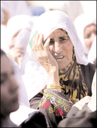 عجوز فلسطينية تنتظر دورها في عبور الحاجز الإسرائيلي بين القدس وبيت لحم لأداء صلاة الجمعة الأولى لشهر رمضان في المسجد الأقصى |