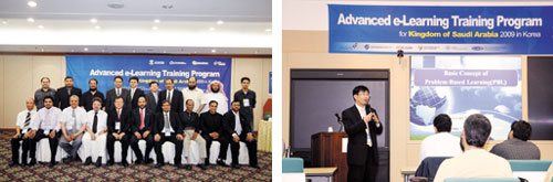 وحول الجهات التي تم التعاون معها أوضح الدكتور أن المركز الوطني نظم برنامجاً تدريبياً بالتعاون مع مجموعة متيور METEORالماليزية في العاصمة الماليزية كوالالمبور بعنوان: (إدارة التعلم الإلكتروني الناجح)، وكان الهدف من هذا البرنامج إكساب المشاركين مجموعة من المعارف والمهارات التي تقودهم إلى بيئة عملية ناجحة للتعلم الإلكتروني، والتي تتطلب منهم وضع إستراتيجيات عملية من أجل إدارة أعمال التعلم الإلكتروني بنجاح، كما قدم المركز الوطني برنامجاً تدريبياً آخراً بالتعاون مع مركز جايس JICE في دولة اليابان تحت عنوان: (التعلم الإلكتروني في اليابان) وشارك في عملية التدريب لهذا البرنامج العديد من المحاضرين والأساتذة من جامعة واسيدا وجامعات أخرى.. كما شمل البرنامج زيارات ميدانية عملية للجامعة المفتوحة وجامعات وجهات أخرى ذات خبرات مميزة في مجال التعلم الإلكتروني حيث ساهمت هذه الزيارات في إثراء وترسيخ كافة المعلومات المقدمة في البرنامج التدريبي. وفي المملكة المتحدة اختتم المركز الوطني برنامجاً تدريبياً مميزاً بالتعاون مع جامعة مانشستر University of Manchester تحت عنوان: (التعلم الإلكتروني ومستقبل التعليم الرقمي)، وكان من أهم أهداف البرنامج إثراء الوعي بين المشاركين بمميزات استخدام عملية التعلم الإلكتروني في تقديم المقررات إلى جانب تزويد المشاركين ببعض المهارات المتعلقة بالتعلم الإلكتروني لتطوير المحتوى والمقررات باستخدام وسائل متعددة من أجل تمكينهم من العمل بإنتاجية أكبر مع الخبراء التقنيين في أعمال مشتركة مستقبلاًَ.. كما نظم المركز الوطني بالتعاون مع معهد أبيك للتعليم التعاوني في كوريا الجنوبية في الفترة من 12 - 23 شعبان لعام 1430هـ الموافق 3 - 14 أغسطس لعام 2009م ورشة تدريبية بعنوان: (التعلم الإلكتروني المتقدم).