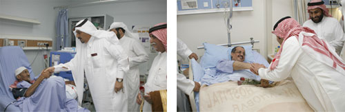 وأوضح الدكتور عواري أن الزيارة شملت عددا من الأقسام بالمستشفى من بينها قسما: الحروق والعناية بالكلى، كما تفقد الوفد أحوال المرضى المنومين وهنأهم بالشهر الفضيل ووقف على حالاتهم الصحية مما بعث البهجة والسرور للمرضى.
