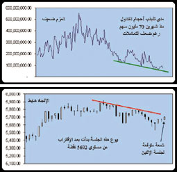 بالفعل هذا ما يحدث في شخصية سوق الأسهم السعودية التي حدث تحول فيها من بعد شهر مايو الماضي، حيث نجده عبارة عن مجموعة من السلوكيات الغامضة بين التردد والاندفاع والتناقض بتكرار عملية قلب الدعوم إلى مقاومات والعكس بسرعة كبيرة نظراً إلى سطحية التعاملات وقلة المشاركة (حجم التداول)؛ مما يجعل الثوابت تتحول إلى متغيرات في تحليل الرسم البياني، حتى الأسواق العالمية لم يعد يجاريها باستثناء أسواق النفط، وهذا الشيء الوحيد الذي يمكن تبريره، والمخلِّص من هذه الزوبعة هو العزم أي ارتفاع أحجام التداول على الأقل فوق مستوى 200 مليون سهم. أما بالنسبة لحركة التداول فقد أغلق عند 5667 نقطة بعد محاولة للاقتراب من مستوى 5692 نقطة وهي فوهة البركان التي اشتدت فيها البيوع، أما أحجام التداول فقد بلغت 76.7 مليون سهم، ولا يزال العزم الضعيف والاتجاه هابطاً حتى الآن، ولا جديد بشأن حركة الأسهم القيادية سوى أنها محصورة بين دعوم ومقاومات أصبحت معروفة للجميع من كثرة مشاهدتها، خصوصاً في شهر رمضان.