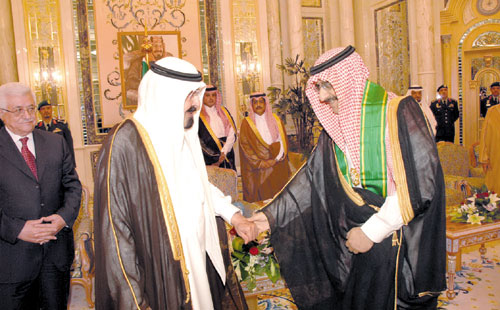 استقبل خادم الحرمين الشريفين الملك عبدالله بن عبدالعزيز آل سعود -حفظه الله- في مكتبه بالديوان الملكي في قصر السلام مساء أمس فخامة الرئيس محمود عباس رئيس السلطة الوطنية الفلسطينية رئيس اللجنة التنفيذية لمنظمة التحرير الفلسطينية والوفد المرافق له.