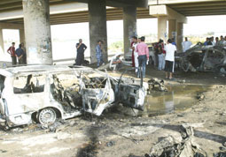 إلى ذلك قتل ثمانية أشخاص بينهم أربعة من عناصر الشرطة وأصيب 15 آخرون بجروح، في اعتداء انتحاري بسيارة مفخخة استهدف أمس حاجزا أمنيا مشتركا للشرطة والجيش في الرمادي غرب بغداد، على ما أفاد ضابط في الشرطة.