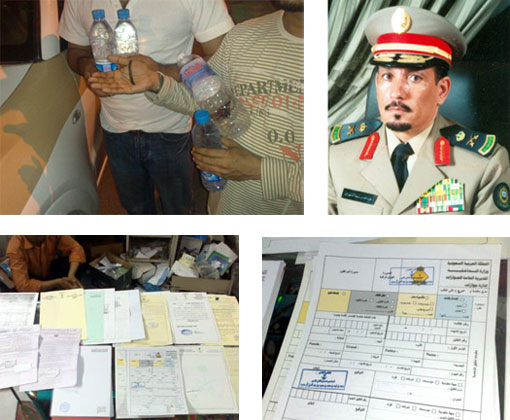 في إطار حملاتها الوقائية للحد من الجريمة والقبض على المجرمين والمطلوبين نفذت قوة المهمات والواجبات الخاصة بشرطة منطقة الرياض حملة أمنية وقائية مكثفة داخل حي الوزارات في مدينة الرياض، تم خلالها القبض على العديد من القضايا الجنائية وعلى مرتكبيها. وقد اعتمدت قوة المهمات والواجبات الخاصة مسبقا على تسيير ونشر فرقها السرية التابعة لوحدة البحث والتحري بقوة المهمات داخل الأماكن المشبوهة والتغلغل داخل أوساط المشتبه فيهم وتحديد أماكن وجودهم ورصد تحركاتهم والتحري عن بعض المعلومات الواردة للقوة، حيث أسهم ذلك بالقبض على العديد من المتورطين بعدة قضايا جنائية.. وقد نجحت قوة المهمات والواجبات الخاصة بضبط وافدين من جنسية آسيوية يعملان بمكتبة يمتهنان تزوير أختام رسمية وتزوير التأشيرات وتزوير الأوراق الرسمية وتزوير أوراق لجمع التبرعات لمؤسسات خارج البلاد بطرق غير مشروعة، وقد عثر لديهم على أوراق رسمية مختومة بأختام رسمية مزورة على بياض وعلى أوراق لشخصيات رسمية مختومة على بياض وعلى تأشيرات مزورة وعلى بطاقات أحوال وكروت عائلية مزورة وعلى أوراق رسمية مزورة وعلى أوراق مختومة ومزورة لجمع التبرعات لمؤسسات خارج البلاد بطرق مخالفة للنظام، وقد قام المذكوران باستغلال المكتبة لهذا الغرض.