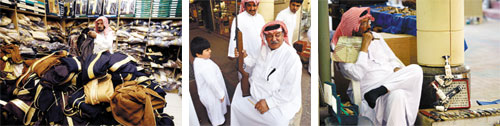 مجموعة من الباعة السعوديين في سوق (الزل) التقليدي وسط الرياض يعرضون البشوت. وبعض الأسلحة التقليدية، والتي يزداد الاقبال عليها هذه الأيام بمناسبة قرب عيد الفطر المبارك. |