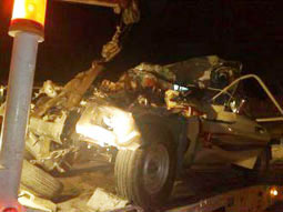 وقع أمس الأول حادث مروري مروع بالدوادمي على طريق ماسل بين سيارتين إحداهما من نوع جيب شاص يقودها مواطن وسيارة من نوع وايت يقودها وافد. وأسفر الحادث عن وفاة المواطن الذي احتجز داخل سيارته وتم استخراجه من بين حطام السيارة. وقد شاركت فرقتان من الدفاع المدني بالدوادمي في قص الحديد وتم نقل الجثة عن طريق الهلال الأحمر إلى مستشفى الدوادمي العام. وقد باشر الحادث الدوريات المرورية والأمنية والدفاع المدني والهلال الأحمر بالدوادمي.