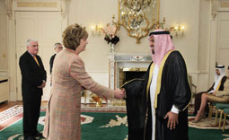 ونقل السفير الدريس خلال اللقاء تحيات وتقدير خادم الحرمين الشريفين الملك عبدالله بن عبدالعزيز آل سعود وصاحب السمو الملكي الأمير سلطان بن عبدالعزيز ولي العهد نائب رئيس مجلس الوزراء وزير الدفاع والطيران والمفتش العام وصاحب السمو الملكي الأمير نايف بن عبدالعزيز النائب الثاني لرئيس مجلس الوزراء وزير الداخلية - حفظهم الله - وتمنياتهم لفخامة الرئيسة الأيرلندية بدوام الصحة وللشعب الأيرلندي الصديق مزيداً من التقدم والازدهار. من جانبها عبرت الرئيسة ماكليز عن سعادتها بافتتاح سفارة للمملكة العربية السعودية في أيرلندا، مشيرة إلى أن ذلك له دور في تعزيز آواصر التعاون والصداقة بين أيرلندا والمملكة. وأشادت فخامتها بالجهود التي يقوم بها خادم الحرمين الشريفين الملك عبدالله بن عبدالعزيز - أيده الله - على المستوى المحلي والعالمي. وبهذه المناسبة عبّر سفير خادم الحرمين الشريفين لدى أيرلندا عبدالعزيز الدريس في تصريح لوكالة الأنباء السعودية، عن اعتزازه بالثقة الملكية الكريمة بتعيينه أول سفير مقيم للمملكة لدى أيرلندا، مشيراً إلى أن أيرلندا بلد صديق وتقوم بدور نشط في إطار الإتحاد الأوروبي وعلى الساحة الدولية من حيث إسهاماتها في عمليات حفظ السلام التابعة للأمم المتحدة وبذل المساعي للوصول إلى تسوية سلمية عادلة للقضيّة الفلسطينية. وأثنى السفير الدريس على ما وصلت إليه مستوى العلاقات السعودية الأيرلندية وما تشهده من تطور ملموس في المجالات كافة. حضر مراسم تقديم أوراق الاعتماد صاحب السمو الأمير تركي بن نواف بن عبدالله آل سعود، والقائم بأعمال السفارة بالنيابة عبدالله العبدان.