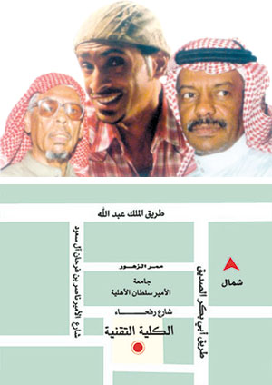 بطولة حبيب الحبيب وعلي المدفع وسعد المدهش إخراج زكريا المومني- تأليف عبدالعزيز المدهش * * * * * المسرحية تعرض على مسرح الكلية التقنية بحي صلاح الدين