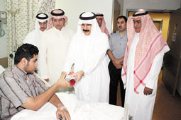 شاركت إدارة مستشفى الملك عبدالعزيز الجامعي المرضى المنومين بالمستشفى فرحة عيد الفطر السعيد حيث قام الدكتور علي بن سليمان النجاشي نائب كبير الأطباء والأستاذ عبدالله المسعود المدير التنفيذي لشؤون الخدمات والأستاذ علي الطيار المدير التنفيذي لشؤون المرضى ومدير العلاقات العامة الأستاذ سعد بن خميس والأستاذ حمدان العنزي نائب مدير وحدة السلامة والأمن والأستاذ سعد العسكر الإخصائي الاجتماعي ومجموعة من منسوبي المستشفى بجولة على أقسام ا لمرضى المنومين صباح أول أيام عيد الفطر السعيد، حيث قاموا بالسلام على المرضى وتهنئتهم بالعيد السعيد وتمنوا لهم الشفاء العاجل وأن يعيد عليهم هذا العيد وهم ينعمون بالصحة والعافية وقدموا لهم الهدايا وباقات الزهور والمرطبات وقد قابل مرضى التنويم هذه البادرة الإنسانية من إدارة المستشفى بالفرحة والسرور، بعد ذلك توجهوا جميعاً إلى قسم طب الطوارئ والإسعاف حيث يتواجد مجموعة من المرضى المراجعين لطوارئ الكبار والأطفال وهنؤوهم بالعيد السعيد وقدموا لهم الهدايا وباقات الزهور والمرطبات، وقاموا أيضاً بتوزيع الهدايا وباقات الزهور على المناوبين العاملين في إجازة العيد وهم أطباء الطوارئ والممرضين والممرضات وأطباء وفنيي التخدير والعمليات والمختبر والأشعة والصيدلية الخارجية وعيادات الرعاية الأولية والسنترال ومنسوبي السلامة والأمن بالمستشفى وبعض الأقسام الإدارية حيث عبروا عن فرحتهم وقدموا شكرهم لإدارة المستشفى على هذه اللفتة.