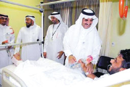 وأثناء الجولة قام الدكتور أبو ملحة والمرافقون بتوزيع باقات من الورود وبطاقات المعايدة وهدايا على المرضى المنومين في المستشفى.